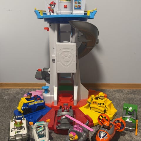 Min sønn selger sine pawpatrol leker. Usikker på hva folk selger det for. Kom med bud. Kan selges samles eller hver for seg.