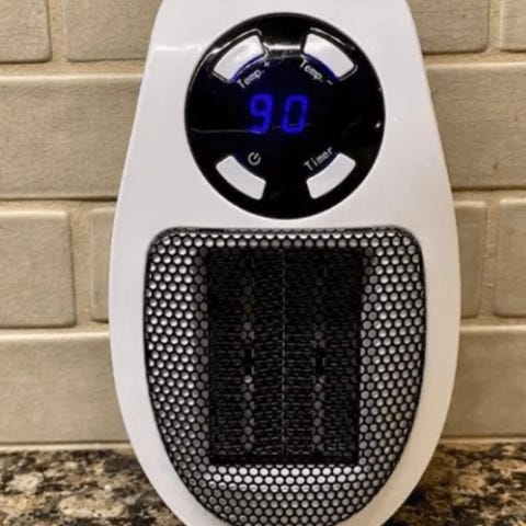 Utrolig snedig å ha i en bobil eller i en campingvogn eller i en bod/lite rom. Varmer fort. Settes rett i stikkkontakt.