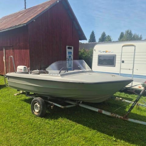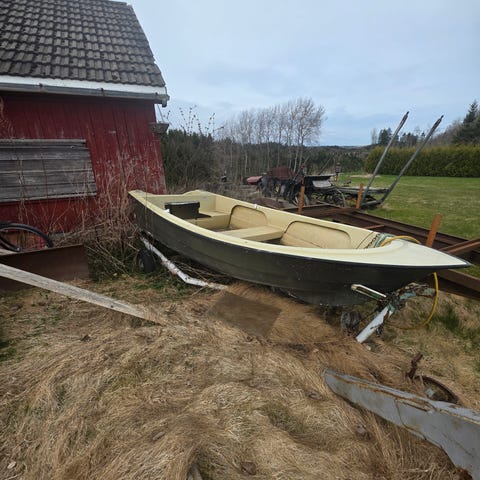 Hel og grei shetland selges. Relativt fin i skråget men kunne trengt en vask. Interiøret er ikke noe å spare på. Den har ett lite hull under, etter litt uheldig lasting. Anbefaler å hente med båthenger siden den veier litt under 600 kg. Har utstyr å løfte med om det trengs.