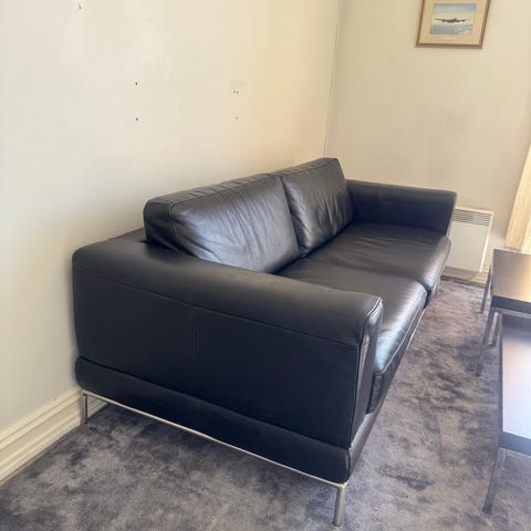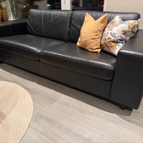 2 seter skinn sofa, ny laken på sitteputene inkludert.
