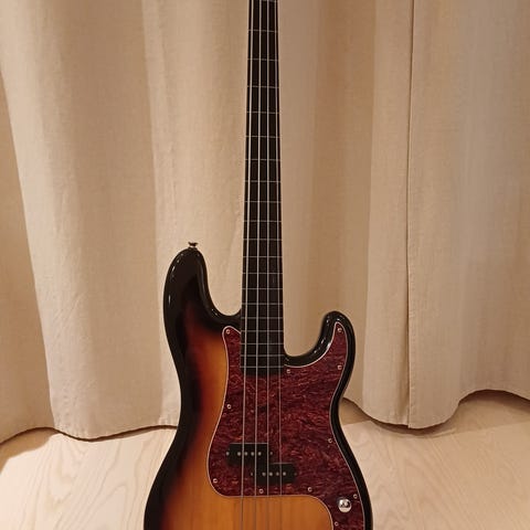 Anskaffet denne nylig på Finn, men fretless uten båndmarkeringer/linjer ble for uvant for meg, så da lar jeg den heller gå. Den fortjener å bli brukt, da den låter helt krem, og spiller nydelig.