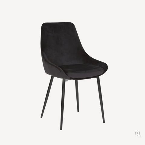 6 stk Theo spisestoler i svart velour med svarte metallben selges samlet for 4000kr.