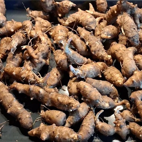Ferske jordskokk selges i pakke på 10 knoller i variabel størrelse og settes rett ned jorda