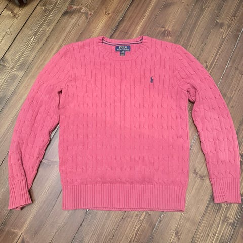 Genseren er rosa og strikket i bomull med flettestruktur. Rund hals med ribbestrikk ved hals, ermer og nederkant. GANT-logo på brystet.
