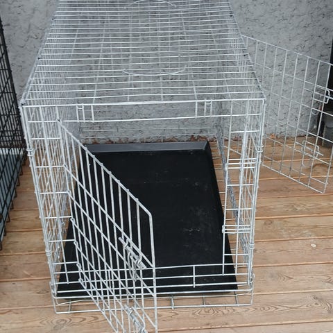 Hund bur .. svart .. b40 l60 h50 passer til liten hund eller valp .. alu bur .. b60 l80 h 60 passer mellom stor hund .. svart 200 kr … aluminium 400 kr .. står i Ådalsbruk ved Løten ..