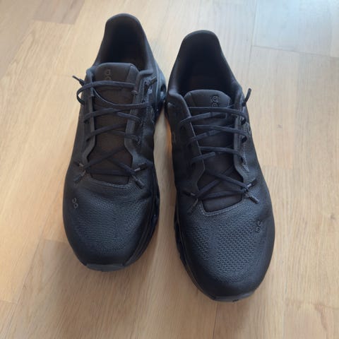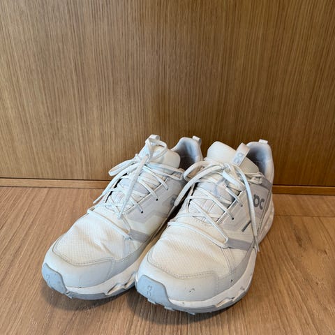 On Cloud sneakers/joggesko i størrelse EU 41. Modellen har overdel i pustende meshmateriale i mørk blå med lyse detaljer og hvit såle med karakteristisk Cloud-demping. Snøring foran og polstret hælkappe for bedre komfort. Yttersåle med gummipartier for grep. Egnet til hverdagsbruk og lett trening/jogging.