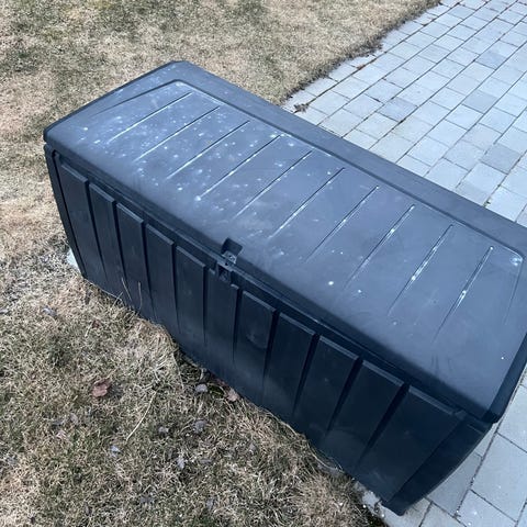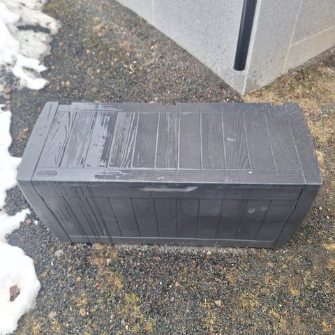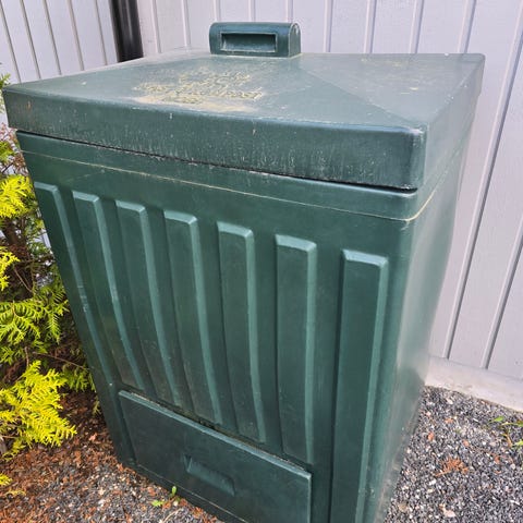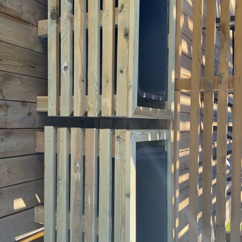 Søppelkasse i tre og metall