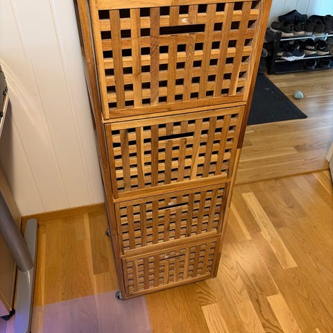 Enkel hylle fra IKEA med medfølgende boks. Brukt, kan være noen få bruksmerker. Må hentes innen 14.04