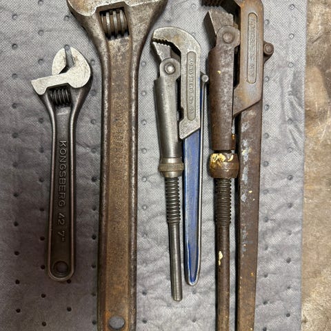 Ukjent merke blandet parti tenger og skiftenøkler i metall.