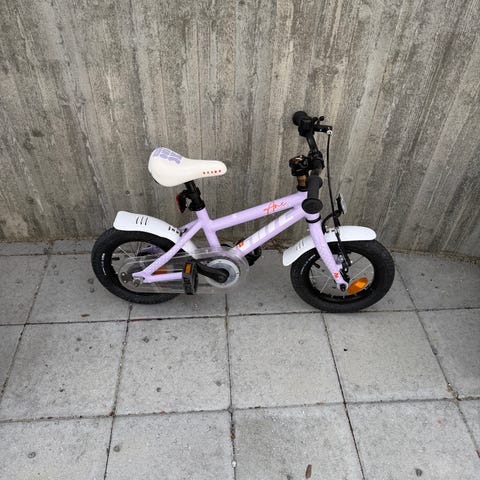 Sykkelen har 12-tommers hjul som passer for mindre barn som skal lære å sykle. Den er utstyrt med kjedekasse og skjermer foran og bak. Sete og holker er lyse, og rammen er i hovedsak rosa med lyse detaljer.