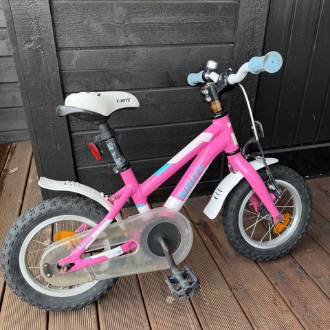 White lite barnesykkel 12" i rosa farge.