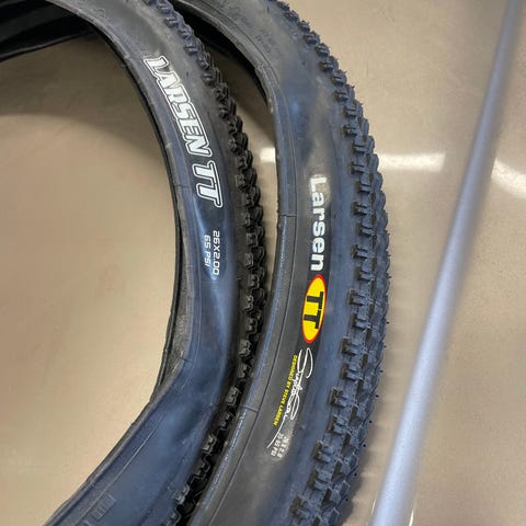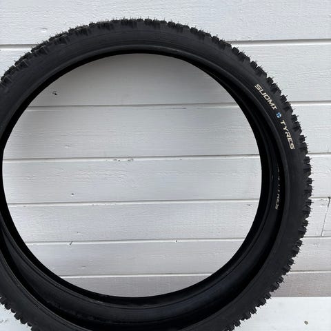 Stått montert på felg med slanger, aldri kjørt med