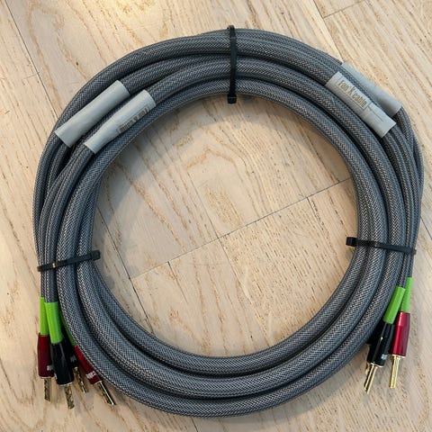 10m høyttalerledning selges. Gullbelagte din-kontakter. Loddefeste for ledningene.