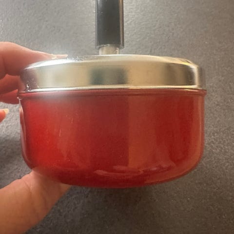 Vintage stekepanne med emalje fra 60-70 tallet selges kroner 700