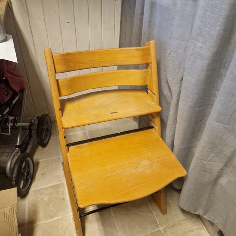 Selger en brukt Tripp Trapp stol. Stolen er godt ivaretatt og fungerer som den skal. Den har noen bruksmerker etter normal bruk, men dette påvirker ikke funksjonaliteten.