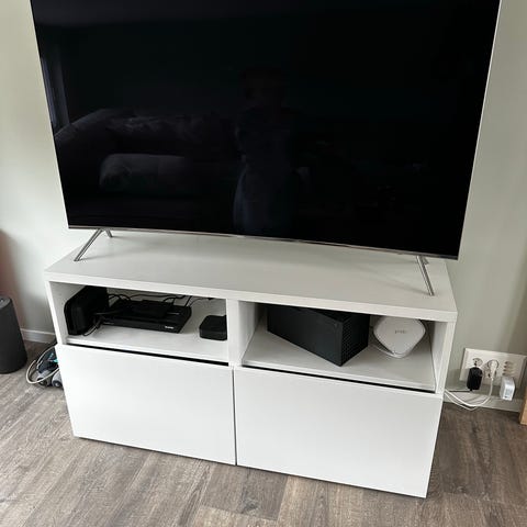 Selger denne hvite TV-benken. Den er i fin stand, men høyre skuffen går ikke helt opp😇 Holder på å flytte ut, så trenger ikke ha den lenger