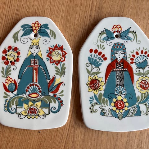Saga veggplater keramikk med norsk folkedraktmotiv
