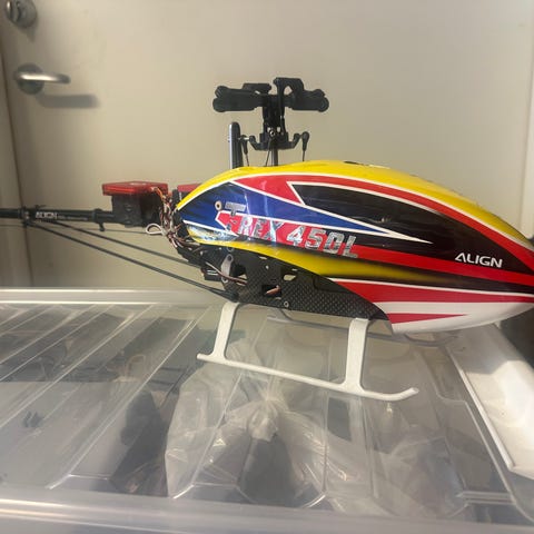 Selger et Align T-Rex 300X helikopter. Dette er ikke flydd – kun senderen er brukt til simulator, så selve helikopteret er i praksis ubrukt.