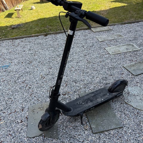 Sparkesykkelen fungerer som den skal, normal slitasje må påregnes (se bilder). Lader medfølger. Selges som den er uten noe form for garanti.