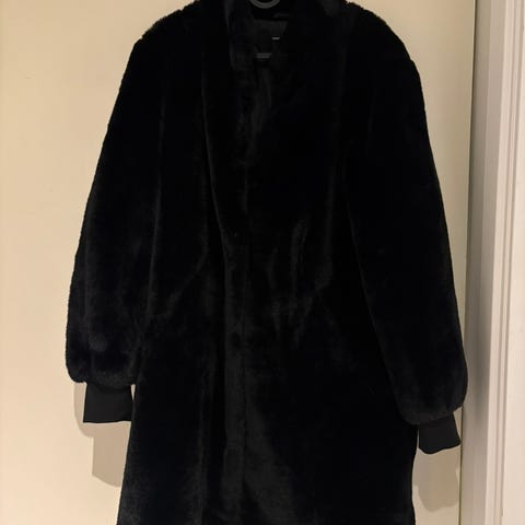 Jakke i fuskepels med hette fra MAUD🖤 Pent, nesten ikke brukt. Ligget i skapet i flere år, og får dessverre ikke brukt den like ofte som den fortjener! Lommene på innsiden er sprukket opp, men kan enkelt sys sammen igjen. Kan sendes mot at kjøper betaler frakt. Åpen for seriøse bud✨