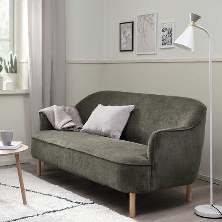 Komfortabel 3-seter sofa med klassisk, tidløs fasong. Trekker er slitesterkt (100% Polyester) og avtagbart på rygg- og seteputer. Kan vaskes på 30 grader finvask. Armlenene er slanke, men behagelige og gir et minimalistisk, nordisk uttrykk. Seteputene er spesialkonstruert i ballfiber og HR-skum for ekstra god komfort. Sofaen er bygget på en ramme av heltre furu og kryssfiner, som gir en stødig og holdbar kvalitet. Ben i sortlakkert stål som gir en moderne og minimalistisk stil