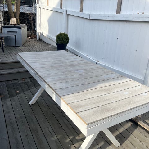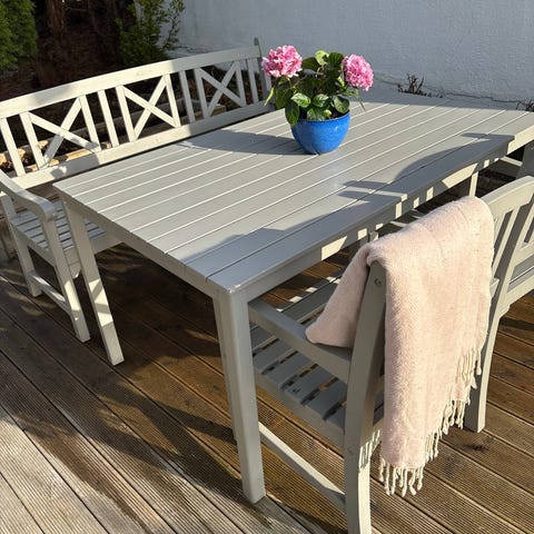 Massiv og solid trebenk - hvit plate med sort understell - heltre