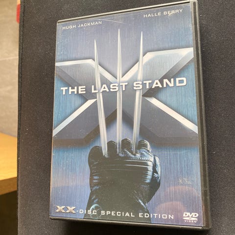 X-Men The Last Stand DVD Special Edition. Film i X-Men-serien utgitt på DVD i spesialutgave. Omslaget viser informasjon om spilletid, språk- og tekstalternativer samt aldersgrense. Egner seg for avspilling på standard DVD-spillere som støtter regionen angitt på platen og omslaget.
