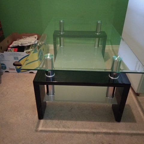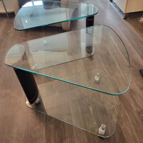 Jeg selger glassbord. Det større bordet koster 300, det mindre koster 200.