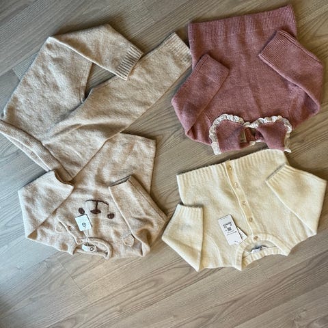 Gensere i str. 68, ulldress fra name it str. 62, varmedress str. 62, pysj str 70 (gule flekker ved nakken).