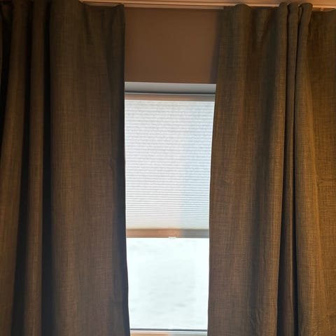 Lystette mørke gardiner 4 lengder, 140 x160 lengde. Selges samlet. Nypris 499kr stk.