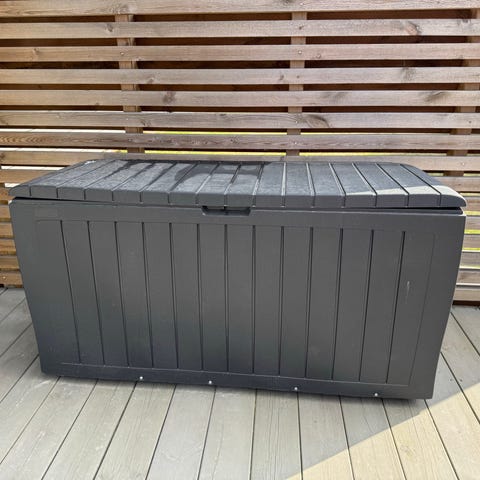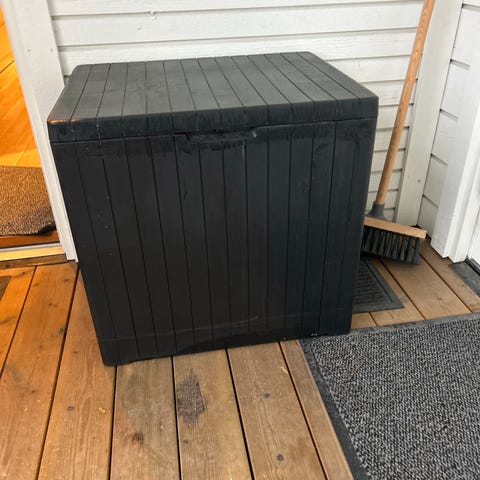 Putekassen er i bra stand med gassdempere på lokk og låsbar.