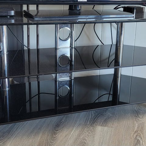 TV-benk m/ Sort glass på bunnen / Transparent glass toppen