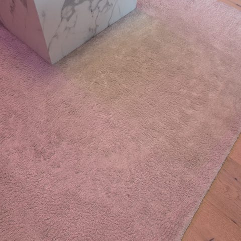 Teppet er litt synlig brukt på noen områder, men fortsatt en fin og god teppe.