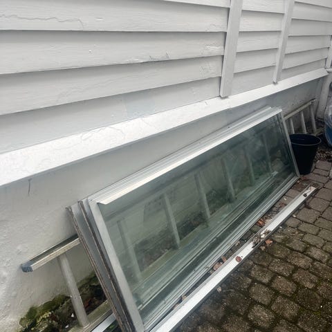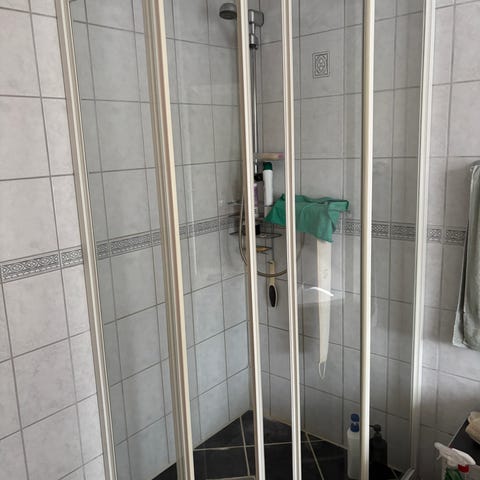 Dusjkabinett med skyvedør i klart glass. Gis bort.