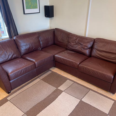 Pent brukt godt i stand ikke noe slitasje. Kan brukes som sove sofa også. Sovemadrass har noen kaffefleker som mest sannsynsynlig kan vakses bort- ellers er sofa i god tilstand.