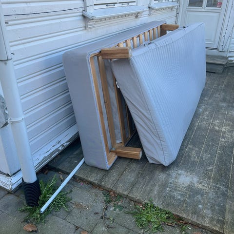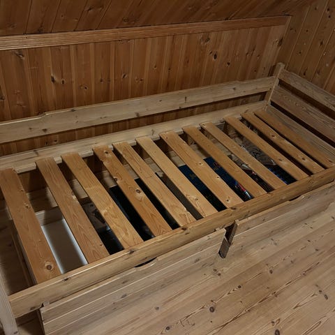 Jeg gir bort en brukt seng 75 cm bred. 200cm lang.