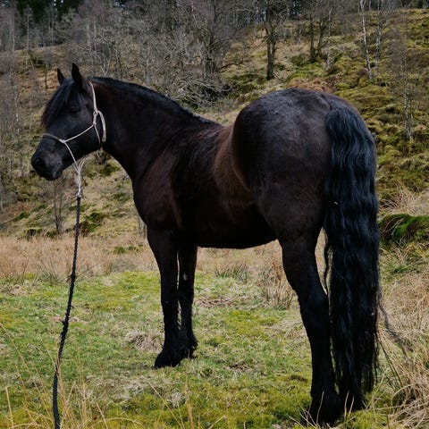 Går i flokk med små ponnier her, noe som fungerer greit, men hun er naturlig nok sjefen.