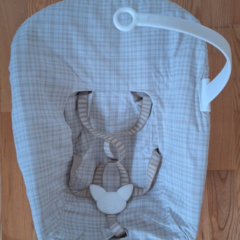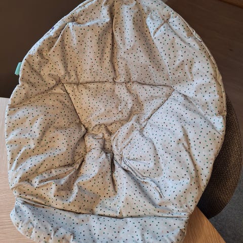 Stokke Tripp Trapp Newborn trekk i lys blå bomull med lite mønster. Trekket er laget av 100 % økologisk bomull og er sertifisert etter Organic Content Standard (OCS). Det har strikk rundt kanten for å sitte godt på Newborn-setet til Stokke Tripp Trapp-stol. Kan maskinvaskes etter anvisning på vaskelappen. Egnet som ekstra eller reserve trekk til Stokke Tripp Trapp Newborn-sete.
