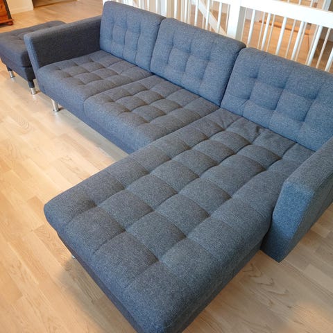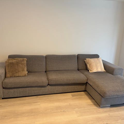 Stor grå sjeselongsofa