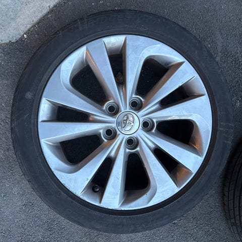 Selger felg med dekk, men dekket har litt igjen.