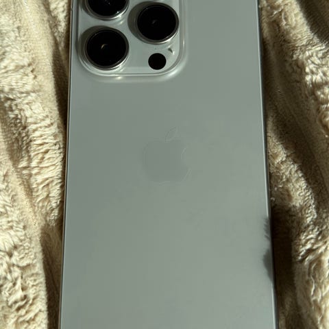 Selger en pent brukt Apple iPhone 15 Pro 128GB i natural titanium. Telefonen er kjøpt ny hos Telia i mars 2024.
