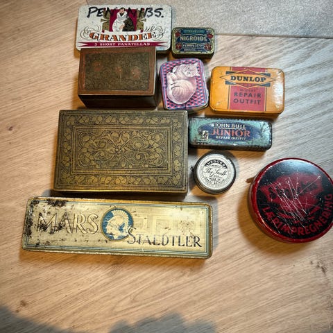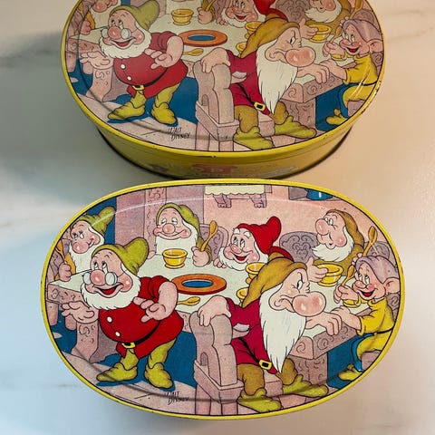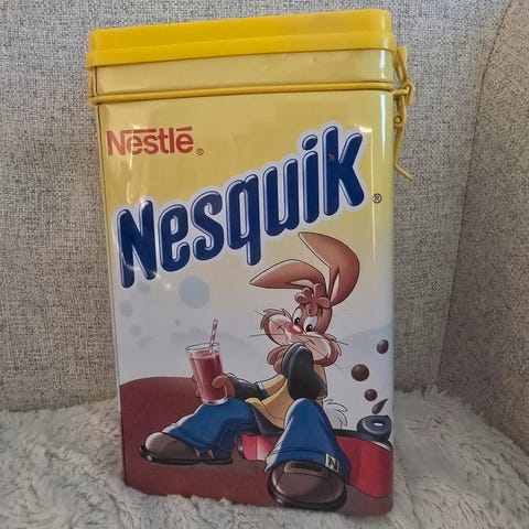 Fine og klare farger. Retro bokser, i fin stand. Par bruksmerker. Ca 18 cm høye. Perfekte til oppbevaring av mat eller som samleobjekt/dekorasjon🌸 200kr for begge.