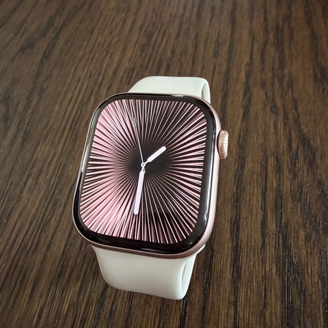 Apple Watch S10 42mm smartklokke rose goldsilikonreim
