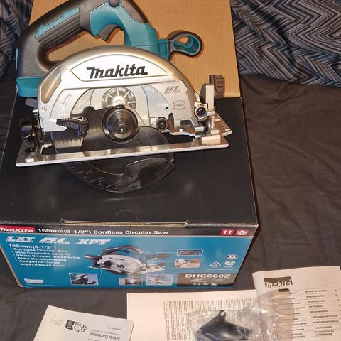 Makita DHS680 sirkelsag med børsteløs motor. 165mm blad. Virker som den skal.
