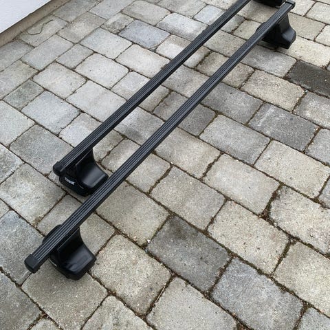 Selger brukte Thule SquareBar Evo. Har aldri vært montert på bil av meg, og jeg tror festesettet (Kit 187084) mangler. Dette kan eventuelt kjøpes separat, for eksempel hos Thansen til ca. 500 kr.