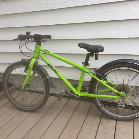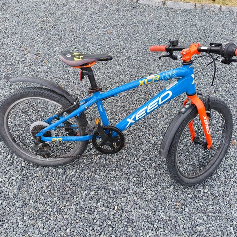 Xeed XC JR 20 barnesykkel med 20" hjul. Sykkelen har lett ramme i gul farge med røde detaljer. Utstyrt med dempegaffel foran, felgbremser, skjermer bak og støtte. Den er veldig pent brukt, den er blitt brukt noen få ganger på sykkelturer på skolen. Her får man mye sykkel for penga.