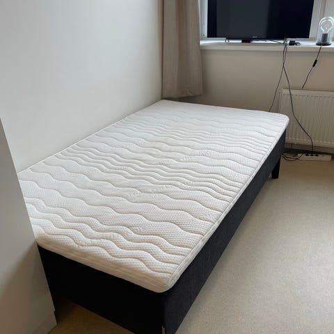 Bohus Zen oppbevaringsseng i størrelse 120x200 cm. Sengen har et grått tekstiltrekk. God lagring!