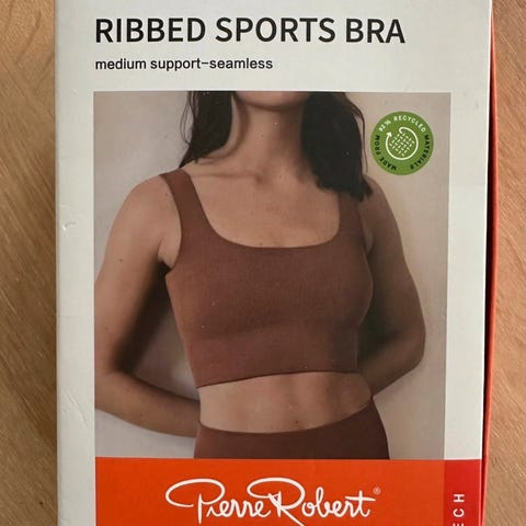 Pierre Robert sports-bh i merinoull, størrelse M, farge svart og med bryterrygg Ikke brukt, kun prøvd, men ble for liten for meg.