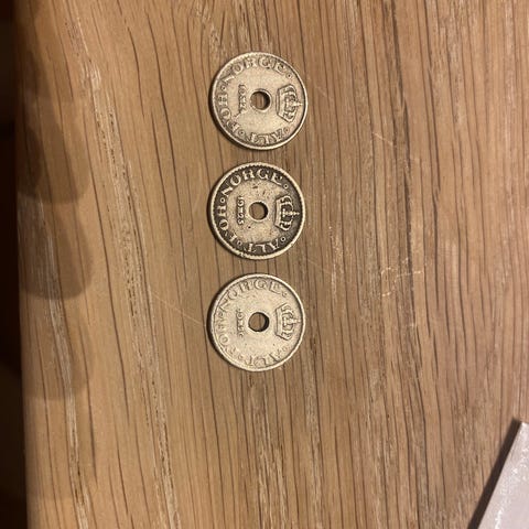 Myntsamling sølvfargede mynter i kapsler