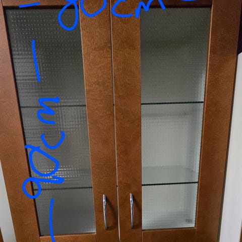 Nydelig høyskap/ vitrineskap i kirsebærutførelse fra den danske kjøkkenprodusenten Unoform. Skapet har 4 gode skuffer (+ 1 løst innlegg/ skuffedeler til bestikk el.l.). Skapet er overskudd fra et kjøkken fra 2004 som vi selv kjøpte brukt på finn for et par år siden. Desverre har vi ikke plass til dette fine skapet. Det har vært montert og bygget inn i vegg tidligere (Se bilde), det er spotter i toppen av skapet. Malingsrester osv rundt kant har gått fint å fjerne med såpevann og litt skuring på modulene vi selv har brukt.